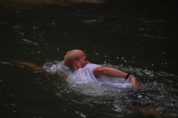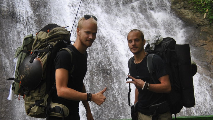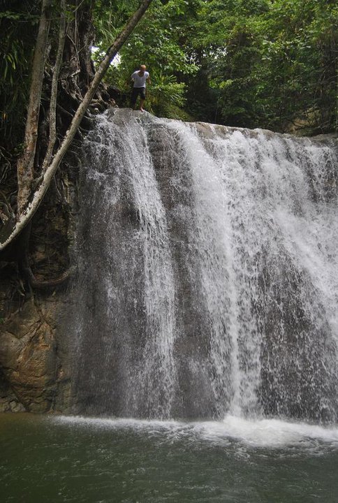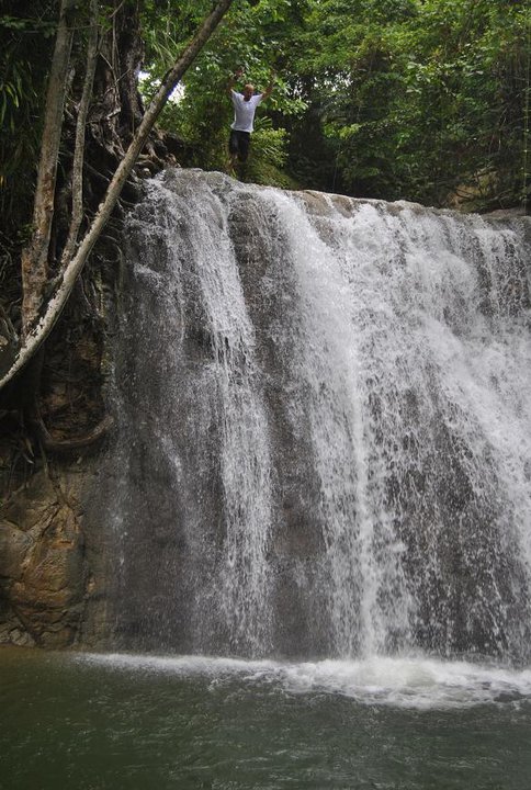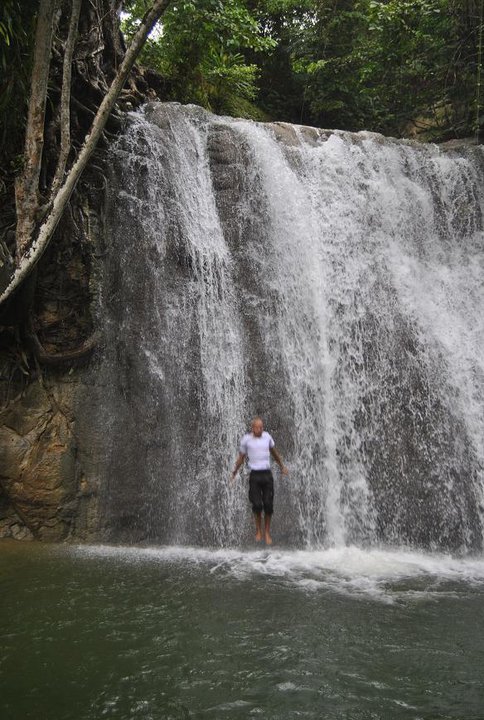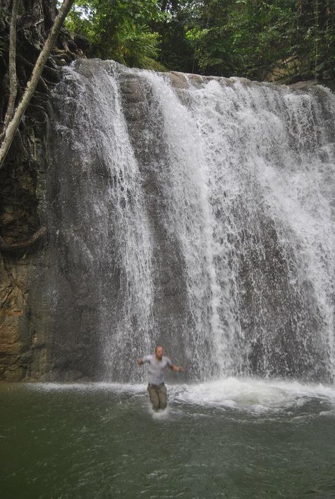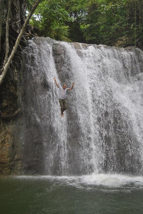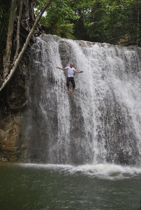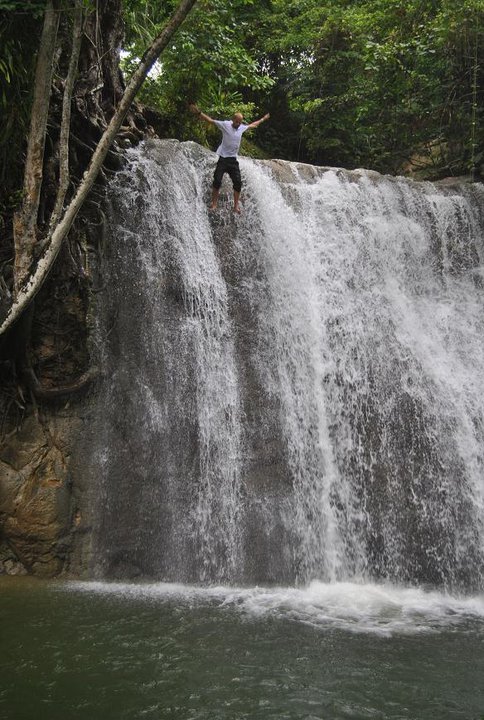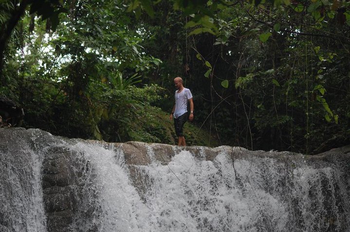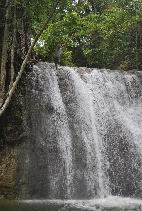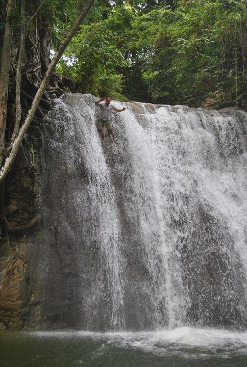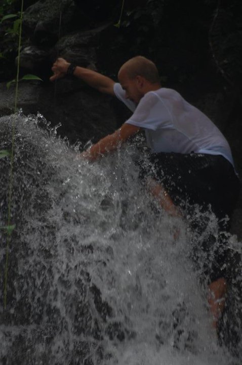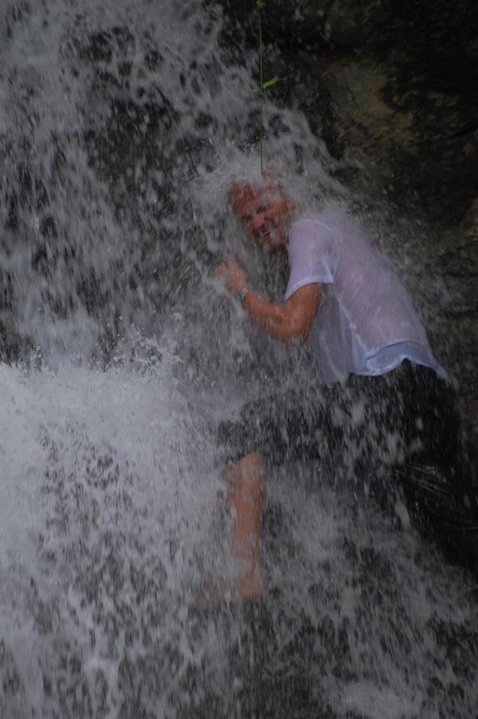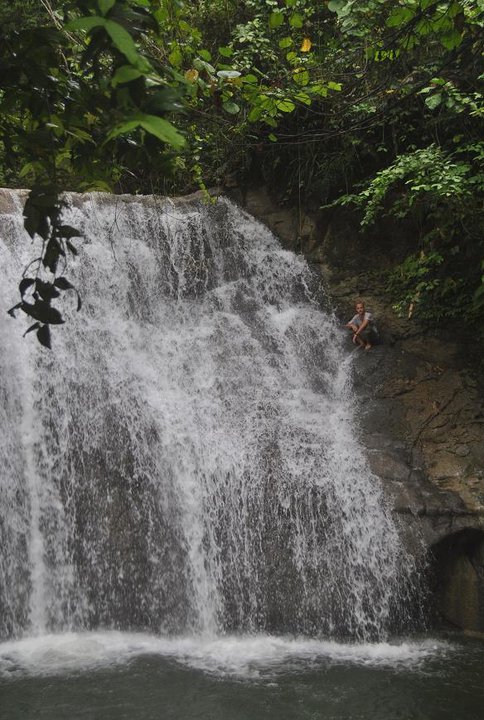 Vi hittade ett vattenfall med tillhorande vattenfylld grotta. Har spenderade vi nagon timme med att leka, fota och filma.