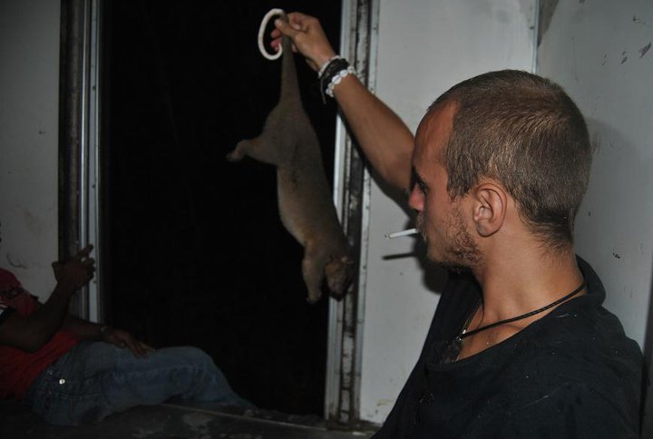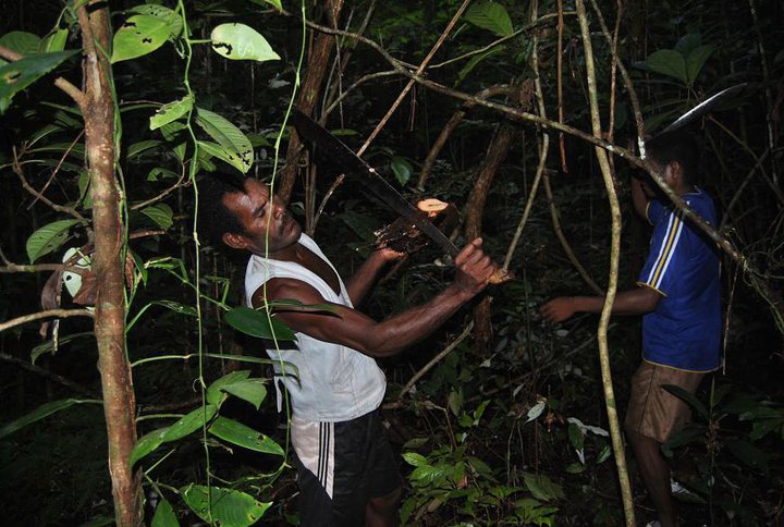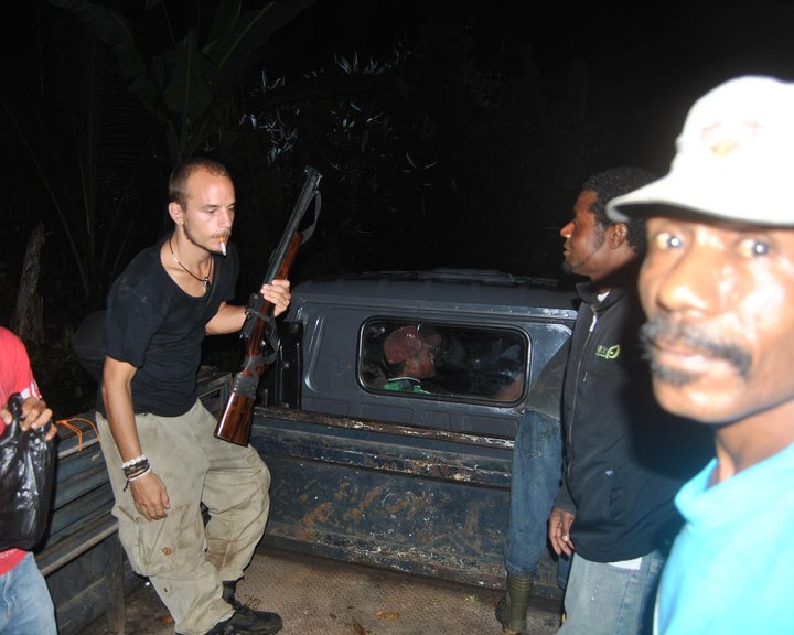 Han och hans vanner tog i alla fall med oss ut for att jaga kuskus, ett litet nattaktivt tradlevande pungdjur, lika stort