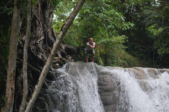 valtrande mannen i hela byn. Efter cirka 3 timmars vandring stannde vi for att ata en pinang, och vi hade nastan gett upp.