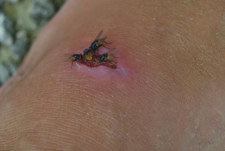 Dessa pitbullflugor finns i mangder. Ett litet oppet sar blir en buffe for dessa flugor som verkligen sliter och tuggar i saren. Sar blir latt infekterade i denna tropiska miljo, och de blir latt manga, sa flugorna kan ibland bli lite for mycket.