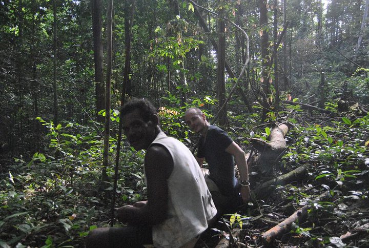 innan vi gick ivag for att jaga. Under de sex foljande timmarna gick vi upp och ner i Papuas bergsregnskog med den mest