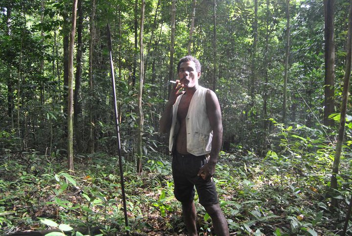 Till slut berattade en man vi traffade i en liten by att det fanns en som jagade med hund och spjut. Vi foljde med till