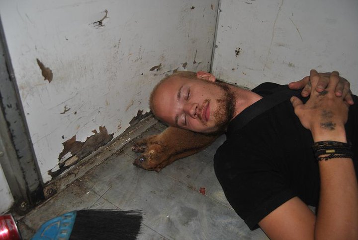 Har i Indonesien har vi sovit pa manga olika stallen, bland annat pa golvet i en liten kiosk och pa en polisstation. Nu