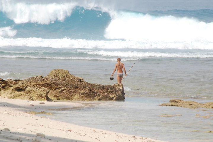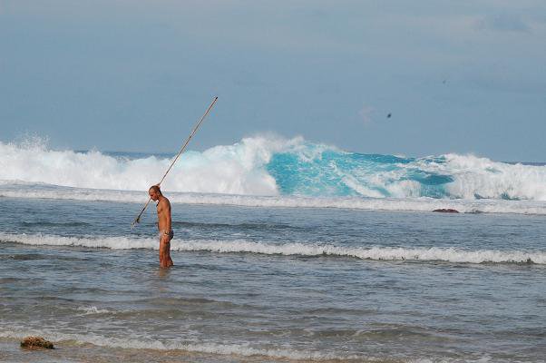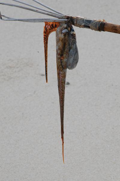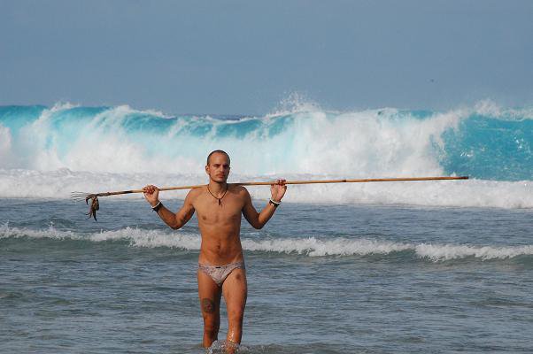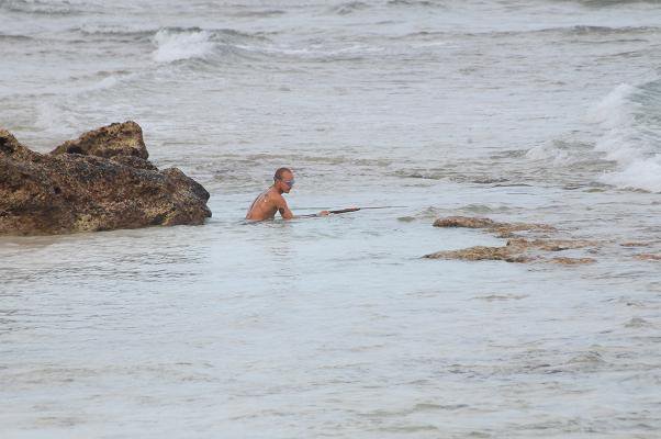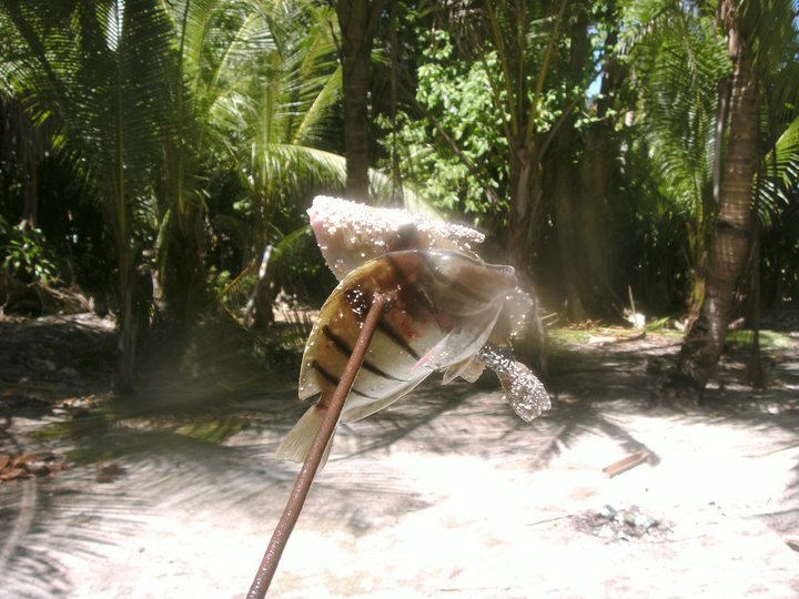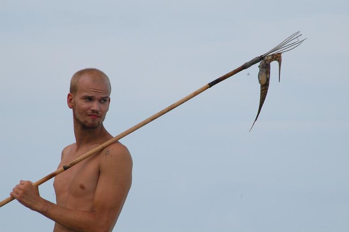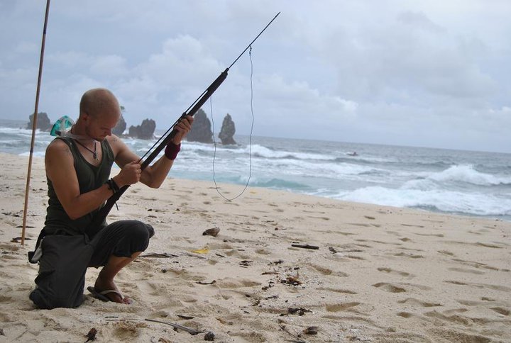 Vi köpte med oss två hemmagjorda harpuner till ön, dessa gick sönder efter mindre än en dag. Jag gjorde om den ena till en
