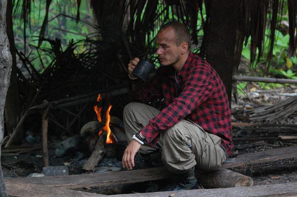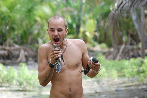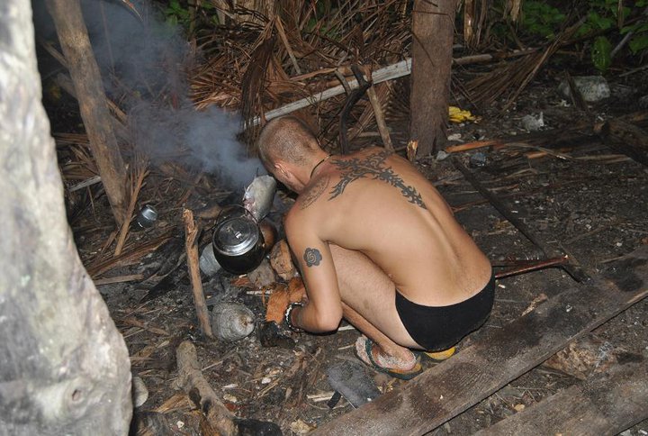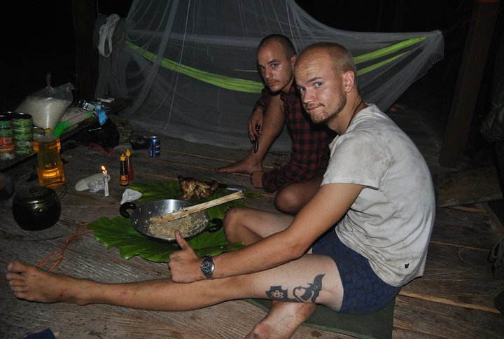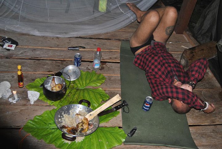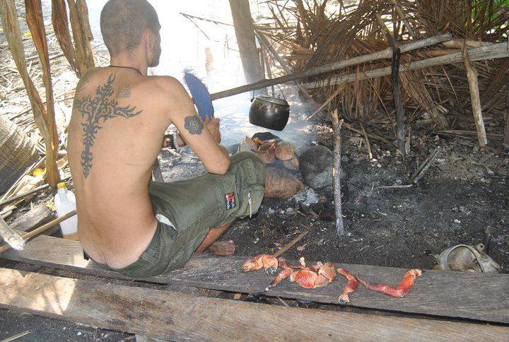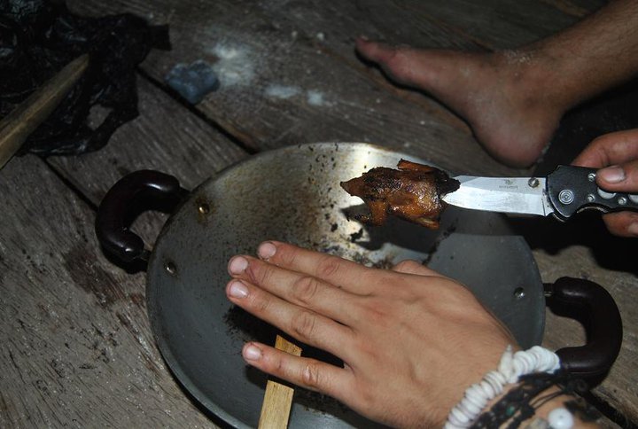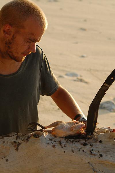 Och löningen var en hängmatta och lite rep. Vi lyckades fånga en höna, och även om den var fruktansvärt seg att äta, sa