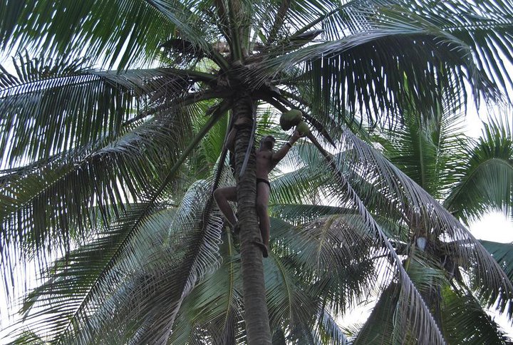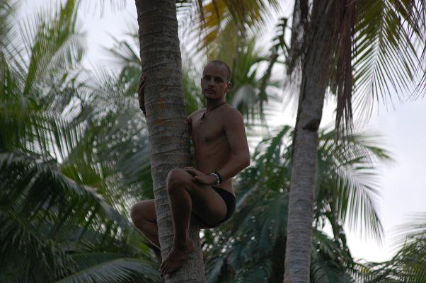 När vi ville lyxa till det lite, fick vi klättra upp i någon palm för att få tag på de färska kokosnötterna som har en