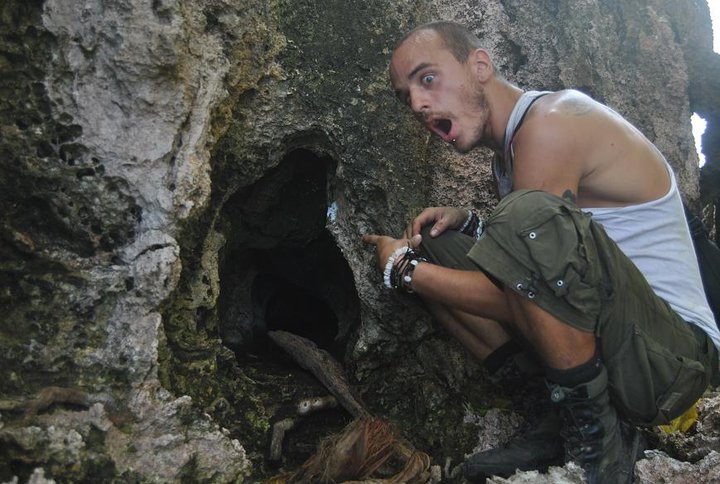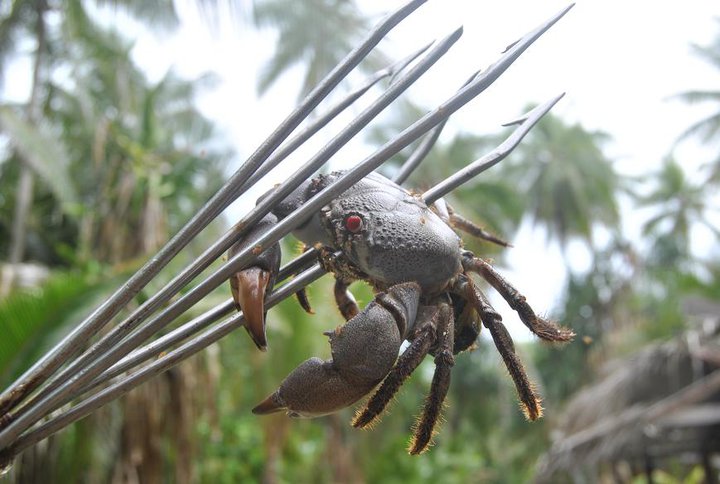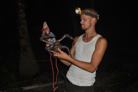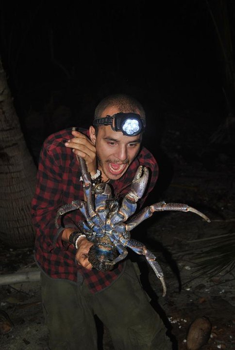 På vår kära öde ö fanns det även kokosnötkrabbor, väldens största landlevande ryggradslösa djur. De bodde i små grottor i