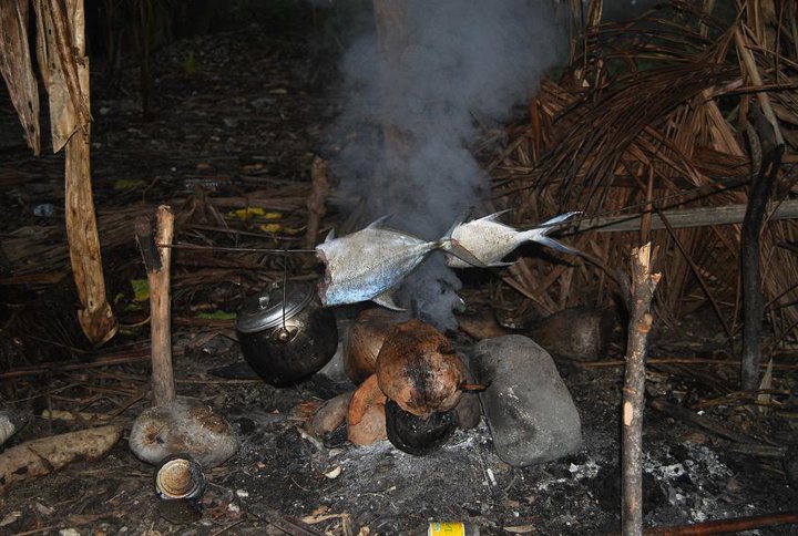 stranden och sedan satt det en fisk på kroken. Vi blev nästan lite besvikna över att det var så lätt att skaffa mat, för