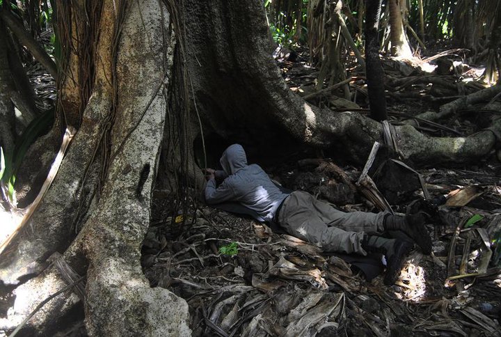 Här bodde vi under vår vistelse på ön. Ett golv och ett tak i princip. Denna boning har folket från den närmsta ön byggt