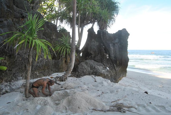 vi hittade någon skoldpadda som höll på att lägga ägg. En dag när vi inte lyckades få någon mat och vi var riktigt
