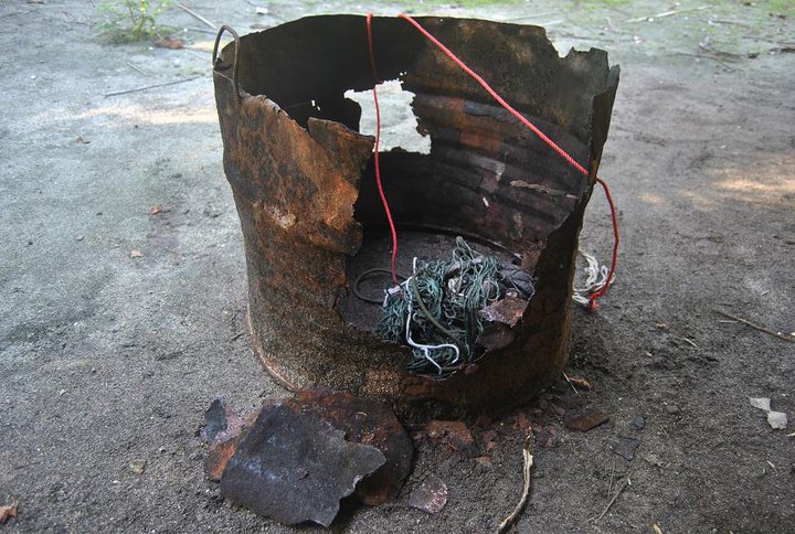 och la dem i denna tunna som var hel på kvallen. När vi vaknade var tunnan sönderklippt och en krabba hade lyckats rymma.