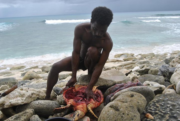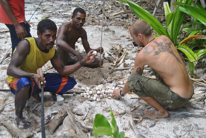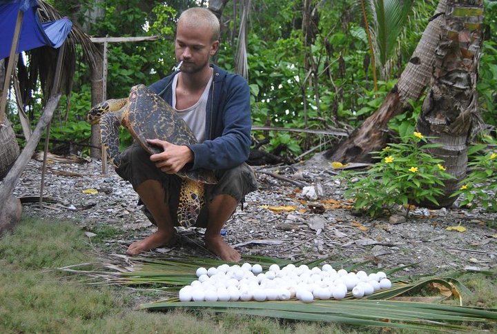 Sköldpaddorna och deras ägg som vi skulle vara så rädda om, gick Papuanerna och grävde upp direkt när de kom till ön. Det