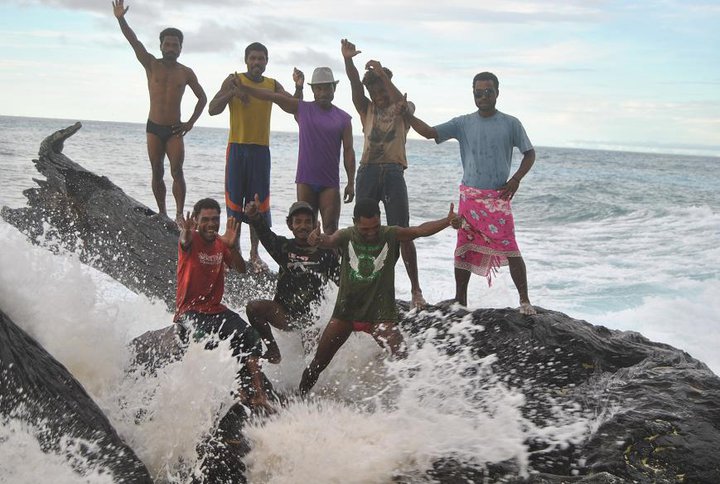 Den näst sista dagen kom det här gänget till ön, det är folk från den närmsta ön som åker till vår ö för att fiska. Denna