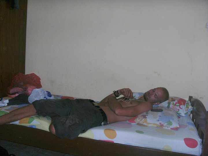 En utslagen Sebastian somnar med efterlängtad musik i öronen på hotellrummet tillbaka i Kota Biak.