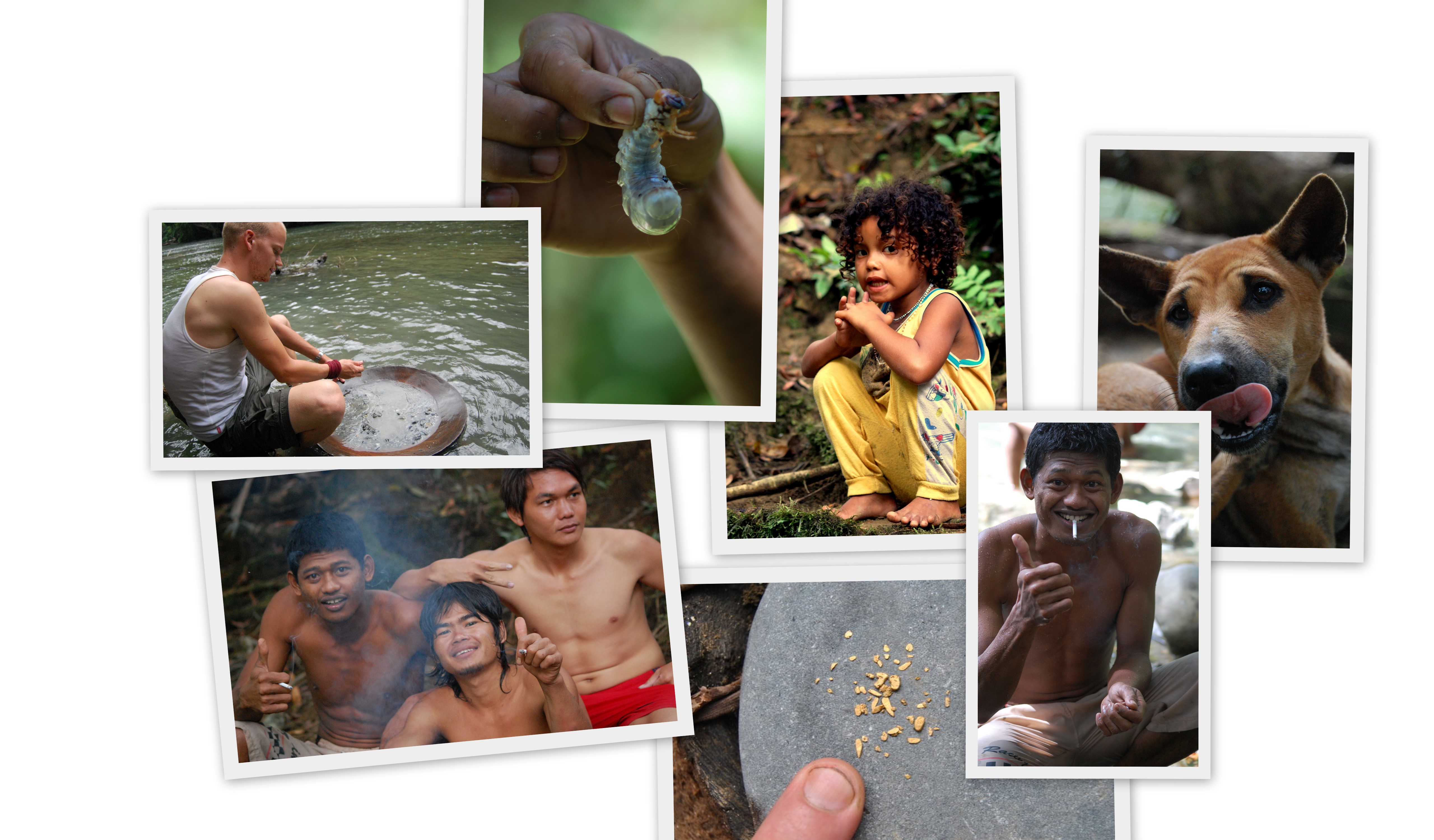 bergspariterna och vi fångade dem genom att binda fast kokosnötter utanför deras hålor och sedan smyga oss på dem när de
